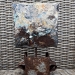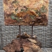 Acryl op doek, gemengde techniek met robijn, bergkristal en bladgoud.
